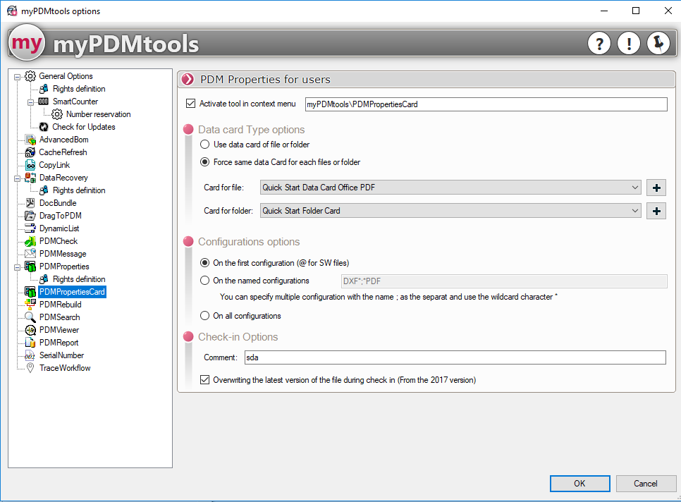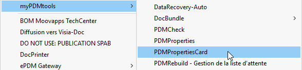 Mit dieser Syntax wird PDMPropertiesCard als Untermenü des Kontextmenüs myPDMtools: