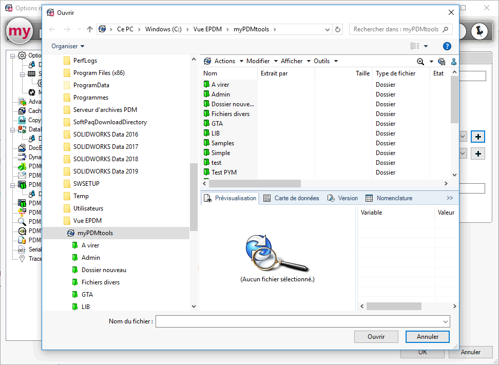 PDMPropertiesCard bietet an, zu einer Datei zu navigieren, der Sie Ihre Datenkarte hinzufügen können: