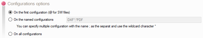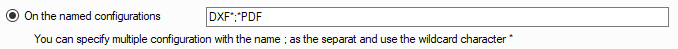 Mit dieser Option können Sie angeben, auf welcher Konfiguration die Variablen geändert werden sollen. Durch die Verwendung des Zeichens * und eines Trennzeichens kann die Auswahl der Konfiguration automatisiert werden. Zum Beispiel können Sie alle Konfigurationen, die mit DXF beginnen oder mit PDF enden, wie folgt angeben: