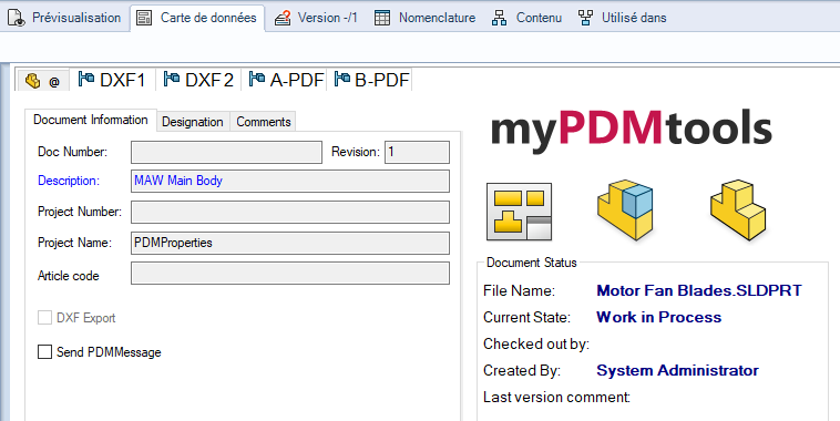 Mit dem Modus 'Datenkarte aus Datei oder Ordner verwenden' wird automatisch die Karte abgerufen, die dem Element entspricht, auf dem PDMPropertieCard gestartet wurde.