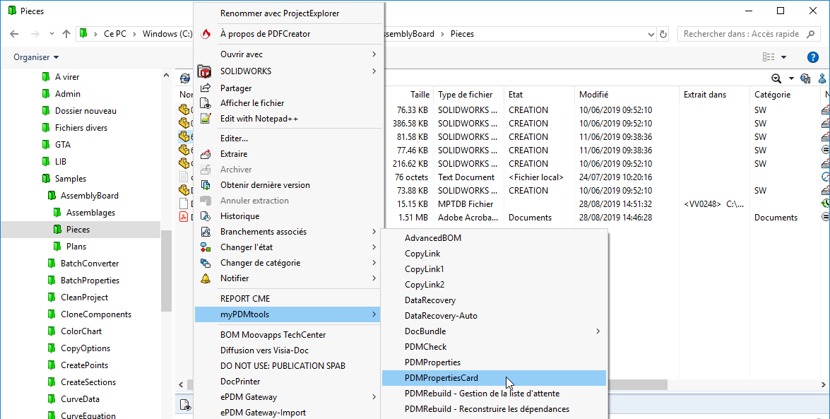 Im Gegensatz zu PDMPropertiesdas Werkzeug PDMPropertiesCard kann nur über das PDM-Kontextmenü gestartet werden.