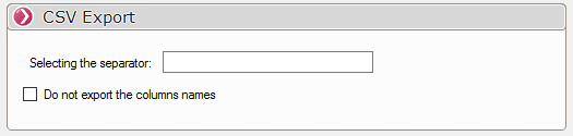 PDMBerichtOptionen PDMReport CSV-Export Optionen 'CSV-Export: Hier sind zwei Optionen einzustellen: die Wahl des Trennzeichens für die Ergebnisse, und die Wahl, ob die Namen der Spalten exportiert werden sollen oder nicht.
