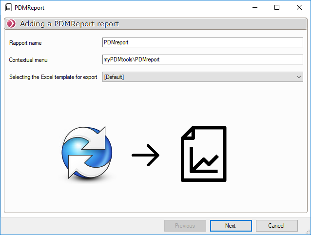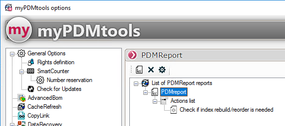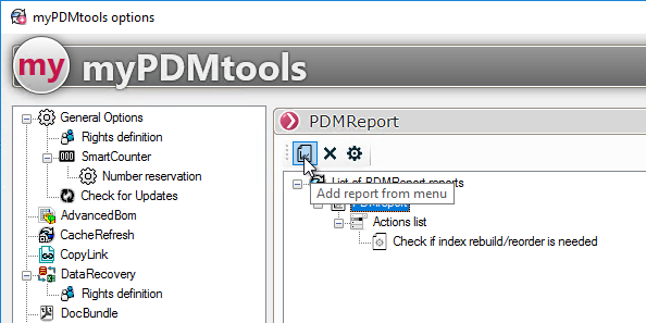 - Der Name des Berichts (Der Name, der in den myPDMtools Optionen erscheint)