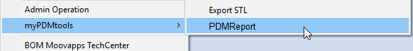- Das PDM-Kontextmenü, mit dem Sie den Bericht starten können.