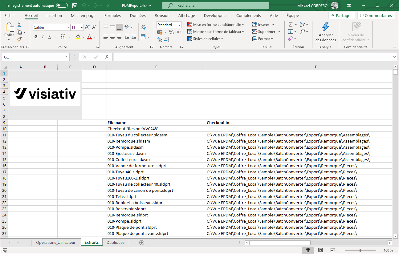 Es ist zum Beispiel möglich, alle von einem Operator durchgeführten Operationen anzuzeigen, alle an einem Arbeitsplatz ausgecheckten Dateien aufzulisten oder eine Liste aller doppelten Dateinamen zu erhalten. Der Export kann in eine CSV-Datei oder direkt in eine Datei im Excel-Format erfolgen.