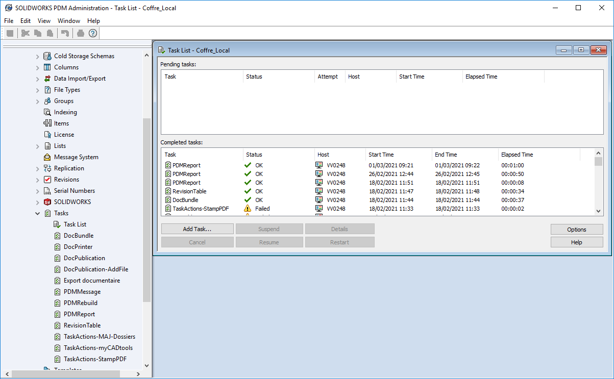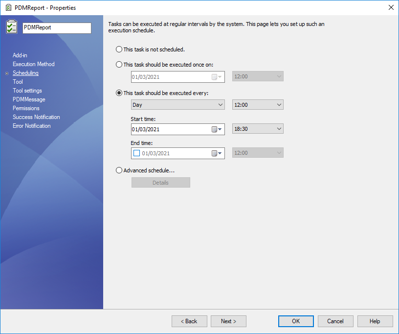 Um diese Art von Bericht in regelmäßigen Abständen automatisch zu erstellen, müssen Sie eine neue PDM-Aufgabe erstellen