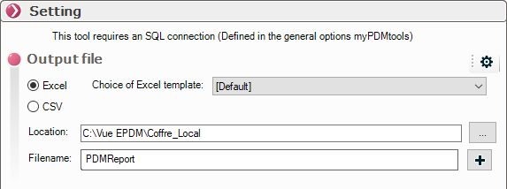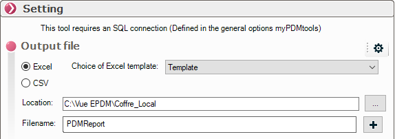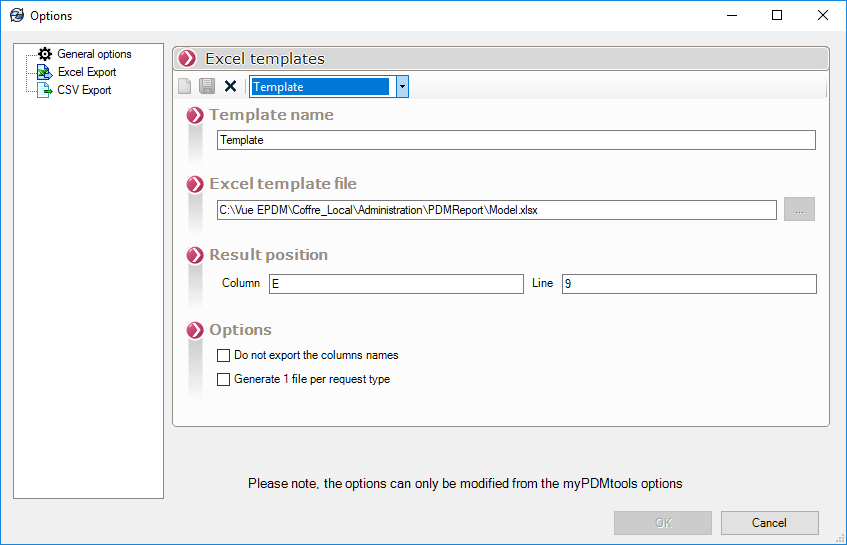 Wir wählen nun das PDMReport-Template sowie den Namen und den Speicherort des Excel-Reports: