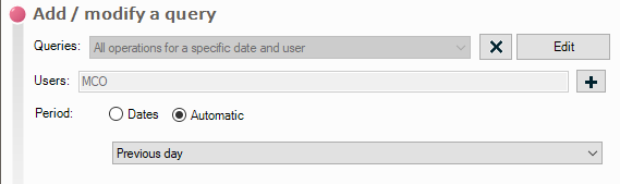 Jetzt müssen Sie nur noch die verschiedenen Abfragen hinzufügen, die in den Bericht aufgenommen werden sollen, z. B. alle Operationen eines Benutzers am Tag vor der Berichtserstellung: