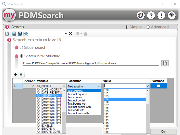 Wählen Sie dann den Operator aus, mit dem Sie gezielt nach dem Wert der Variablen suchen können.