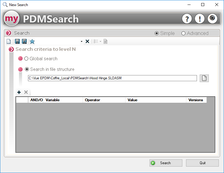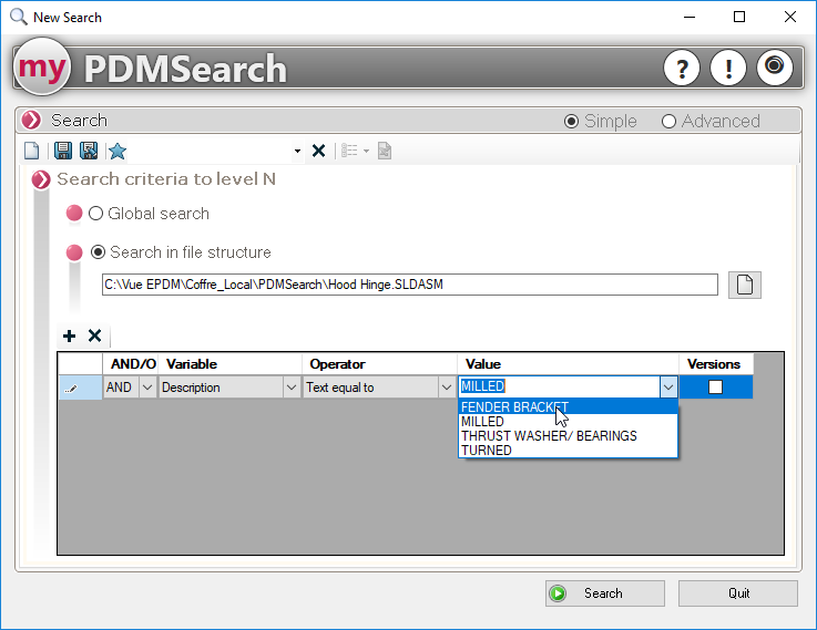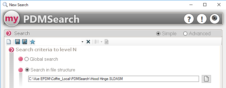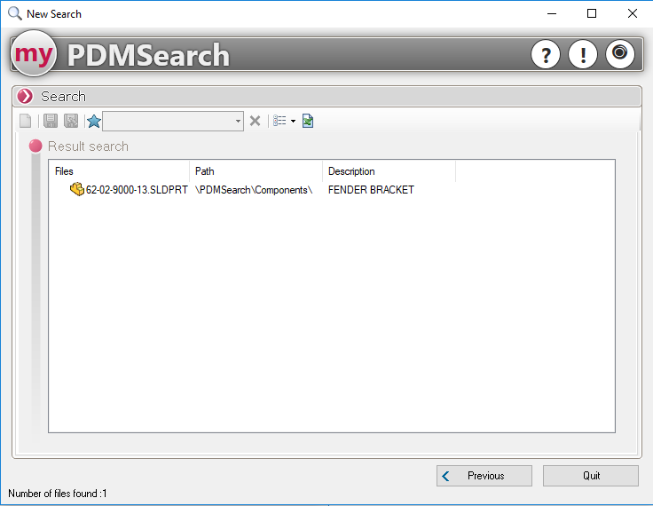 Das Werkzeug PDMSearch de la suite myPDMtools ermöglicht die automatische Suche nach einer Komponente in der Struktur einer Datei: