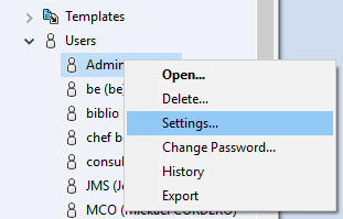 - Rechtsklicken Sie auf einen Benutzer oder eine Benutzergruppe und wählen Sie Einstellungen.