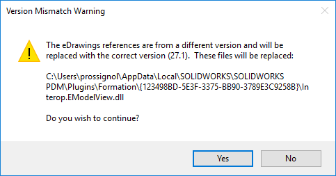 Um den eDrawings Viewer im Tool zu haben, müssen Sie antworten JaWenn Sie mit "Nein" antworten, können Sie das Tool nicht verwenden.