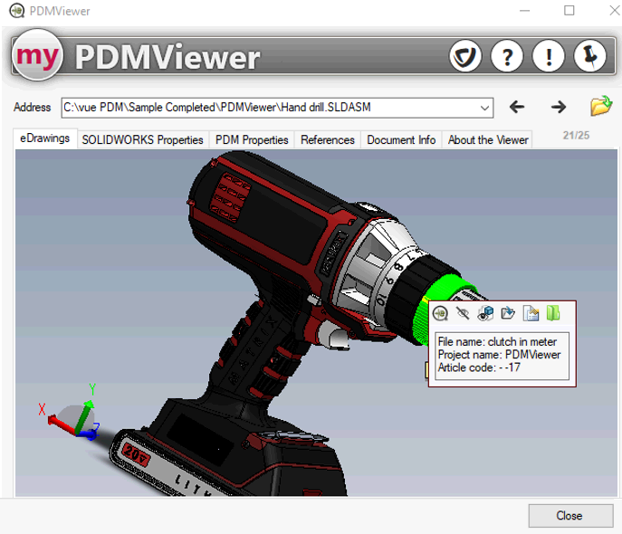 Die Registerkarte eDrawings ermöglicht eine 3D-Ansicht der CAD-Datei.