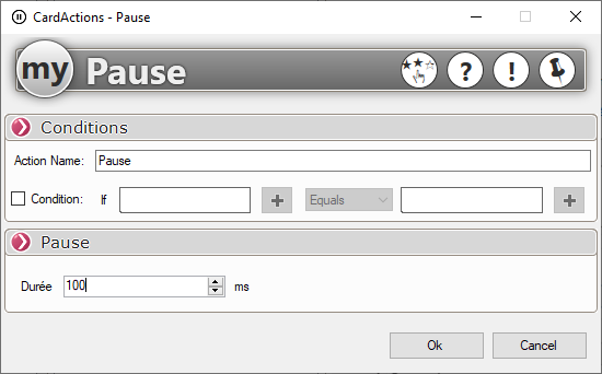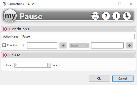 Wie der Name schon sagt, kann man mit dem Typ Pause eine Pause einlegen, z. B. zwischen zwei Aktionen einer Schaltfläche, z. B. zwischen der Ausführung eines Programms und der Veröffentlichung eines Dokuments: