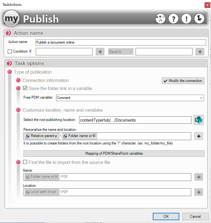 Um eine Publish-Aktion hinzuzufügen, klicken Sie hier:
