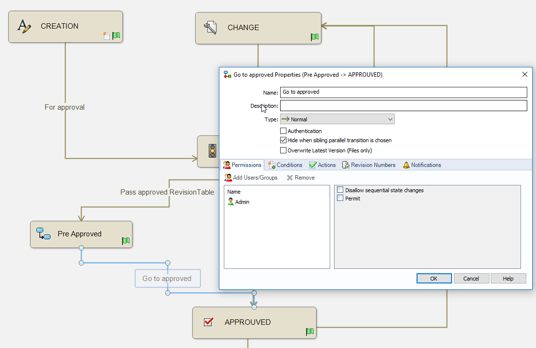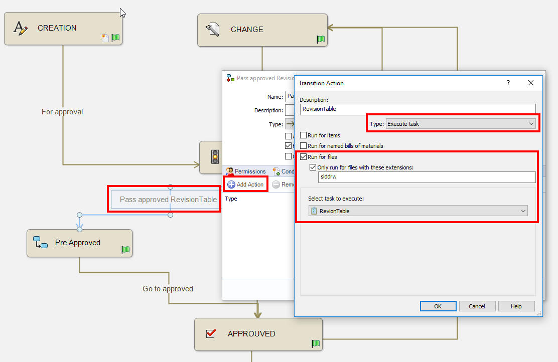 - Duplizieren des Übergangs:Genehmigung zum Staat Vorgenehmigt und Hinzufügen der Aktion: Revision Tabelle.