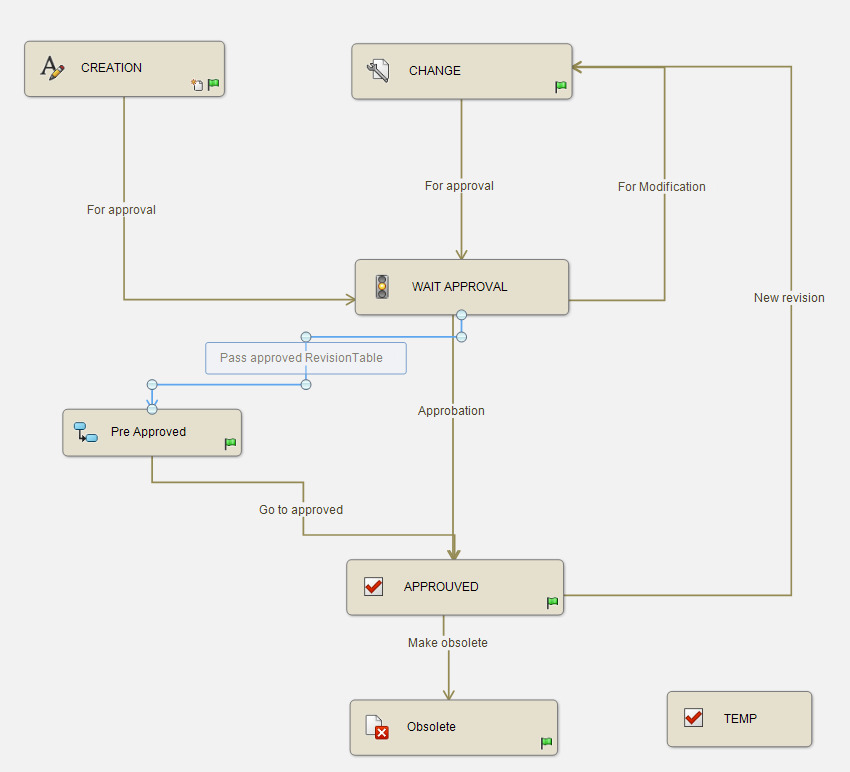 Im Falle einer Änderung des Staates, der das Dokument genehmigt, wird das Werkzeug RevisionTable kann keine Revisionstabelle hinzufügen, da das Dokument nicht mehr bearbeitet werden kann.