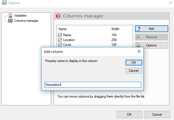 eine Spalte ermöglicht es, eine neue Spalte in der Dateiliste zu erstellen, z. B. Hinzufügen die Säule Beschreibung.