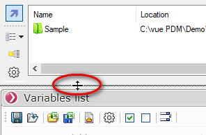 In diesem Anzeigemodus ist ein Großteil der Dateien sichtbar, es ist jedoch immer möglich, den Bereich (nach oben oder unten) mit der Maus zu erweitern (positionieren Sie den Cursor direkt über der Liste der Variablen).
