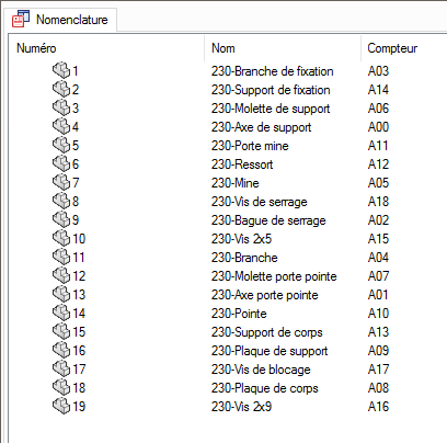 Man findet die Liste der automatischen Zähler, die mit ihren Werten erstellt wurden, indem man auf die Schaltfläche