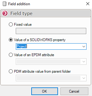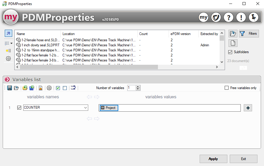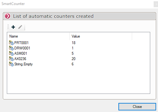 Mithilfe des automatischen Zählers können Sie Zähler aus einem SOLIDWORKS Eigenschaftswert oder einem PDM-Attribut erstellen.