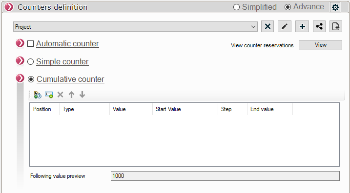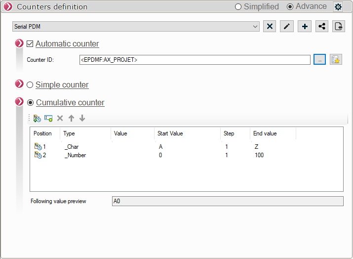 Legen Sie fest, welcher Zähler verwendet werden soll, einfacher oder kumulativer Zähler.