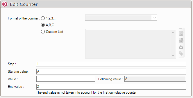 Einstellungen für den in diesem Beispiel verwendeten automatischen Zähler: