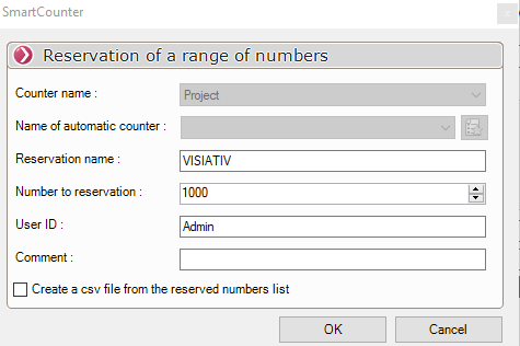 - Für die Visiativ_1-Reservierung wurden 500 Nummern reserviert, die übernommene Startnummer ist 1000 und die letzte Nummer, die verwendet werden kann, ist 1499.