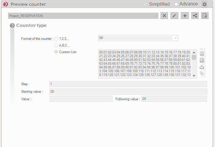 Es wird eine Visualisierung der benutzerdefinierten Liste gezeigt und vor allem der nächste Wert des zu nehmenden Zählers angegeben.