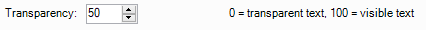 Um eine Transparenz des Textes zu erreichen, kann der Nutzer den Wert für die Deckkraft ändern: