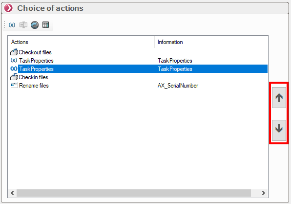 Die Aktionen werden in der Reihenfolge ausgeführt, in der sie sich in der Liste befinden. Mit den Pfeilen können Sie also die Reihenfolge der Bearbeitung ändern.