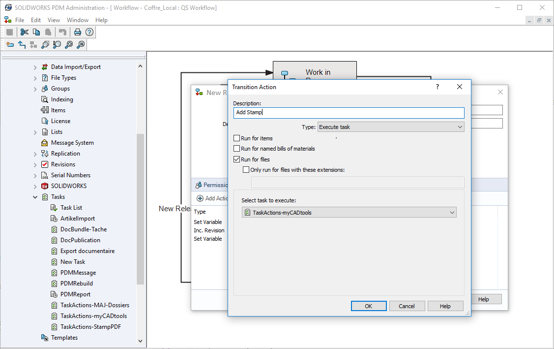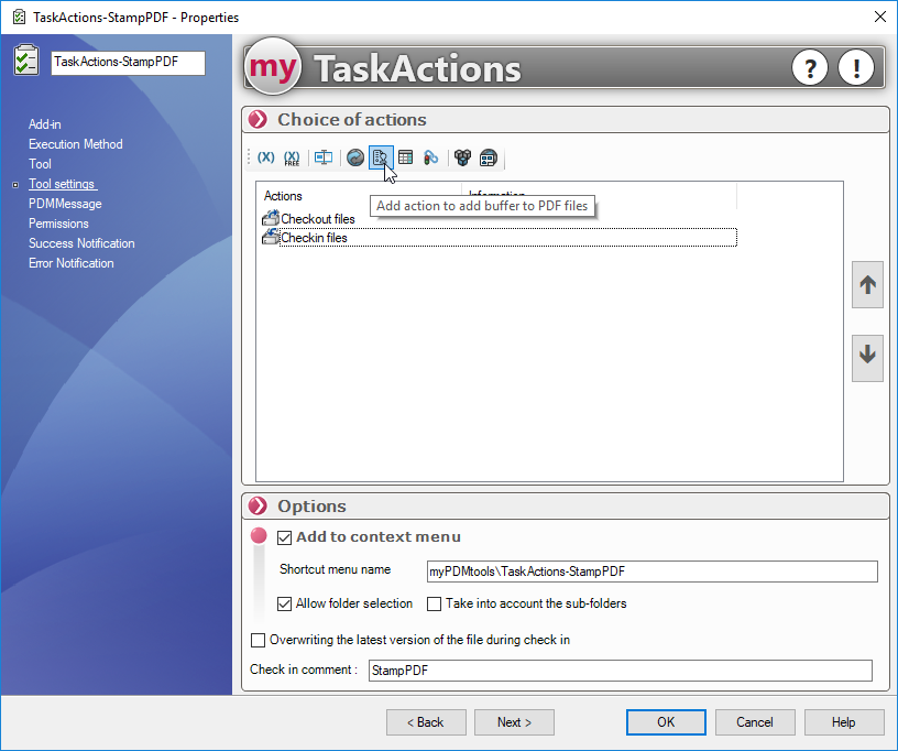 Um einen Stempel hinzuzufügen, erstellen Sie einfach eine PDM-Aufgabe und verwenden das Werkzeug myPDMtools TaskActions: