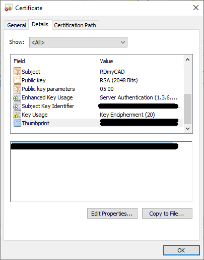 Kopieren Sie auf der Registerkarte Detail den Fingerabdruck: