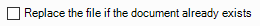 Die Option: "Datei ersetzen, wenn das Dokument bereits existiert". ermöglicht das Ersetzen des Dokuments, wenn im Zielverzeichnis bereits eine Datei mit demselben Namen existiert. Wenn die Option nicht aktiviert ist, wird die Kopie nicht ausgeführt und die Aufgabe nicht fehlgeschlagen: