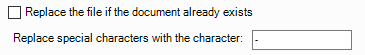 Die Option: "Ersetzen Sie Sonderzeichen durch das Zeichen". ermöglicht es, ein verbotenes Zeichen in einem Dateinamen (z. B. \-Zeichen) automatisch durch das hier definierte Zeichen zu ersetzen: