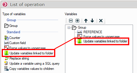 Mit dem Typ 'Ordnerbezogene Variablen neu berechnen' können Sie eine oder mehrere Variablen aktualisieren, die mit dem übergeordneten Ordner verknüpft sind.