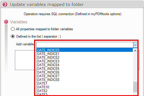 Oder nur die in einer Liste definierten Variablen, dann kommt man nur dazu, das Dropdown-Menü herunterzuklappen, um eine Variable hinzuzufügen.