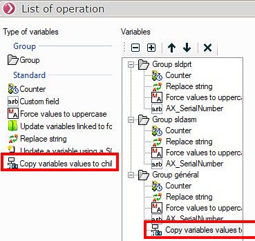 Es ist mit dieser Operation möglich, Werte von Variablen auf die Kinder zu kopieren.