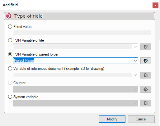 In diesem Beispiel füllen wir die Ordnervariable Project Name mit dem Wert der Variable Project Name des übergeordneten Ordners: