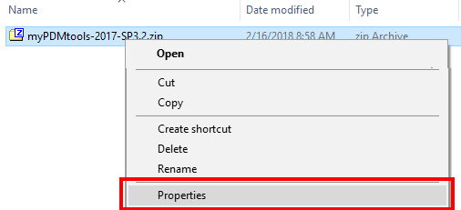 Nachdem Sie die Installation heruntergeladen haben, klicken Sie mit der rechten Maustaste auf die heruntergeladene Zip-Datei oder die Exe-Datei und wählen Sie aus: Eigenschaften