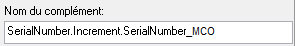 - Renseigner dans le nom du complément la syntaxe suivante: SerialNumber.Increment.Nom du SerialNumber myPDMtools