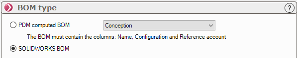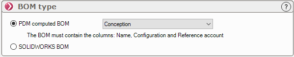 Der Export erfolgt anhand der berechneten Stückliste der Baugruppe, indem Sie den Namen der betreffenden PDM-Stückliste aus der Dropdown-Liste auswählen.