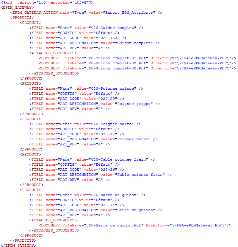 Diese Änderung wirkt sich nur auf Dateien aus, die im XML-Format erzeugt wurden. Wenn der Export im CSV-Format erfolgt (Auswahl im Einrichten von PDM Gateway), wird die Liste der zugehörigen PDF-Dokumente nicht hinzugefügt.