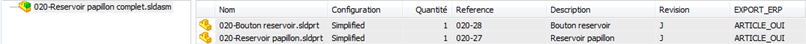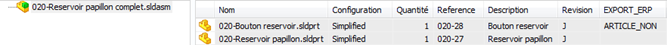 Alle Komponenten der Baugruppe "020-Drosselklappentank komplett" haben den Wert der Variablen EXPORT_ERP auf "ARTICLE_JA" gesetzt.