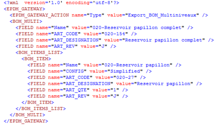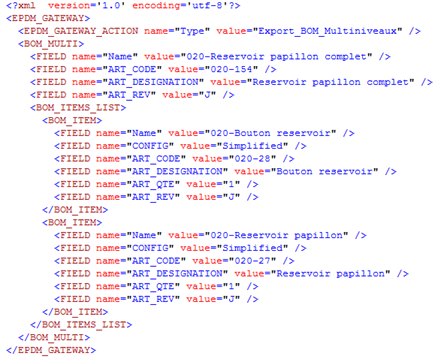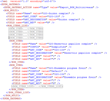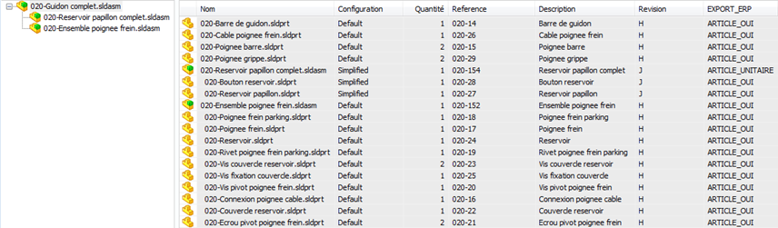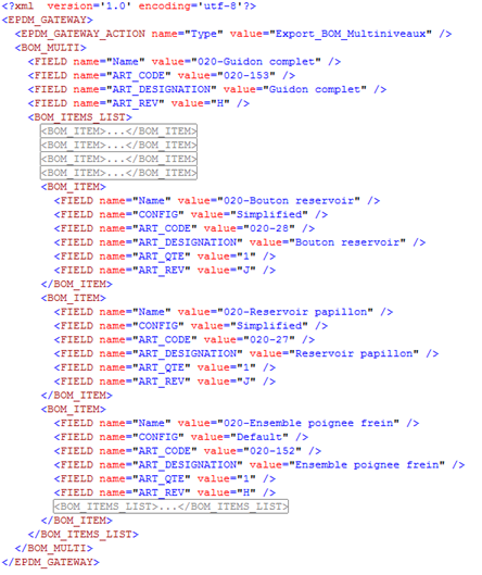 Sie wird nicht exportiert, aber alle ihre Komponenten werden um eine Ebene nach oben verschoben: Sie werden in der folgenden XML-Datei als direkte Komponenten der Baugruppe "020-Lenker komplett" betrachtet.