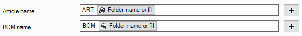 Die Berechnungsformel für die Exportdatei für Artikel lautet "ART-|#Name|", die für die Exportdatei für Stücklisten "BOM-|#Name|".