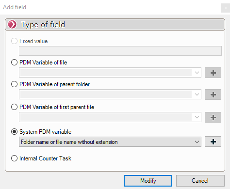 Der Name der Austauschdatei ist nicht vorgeschrieben. Er kann mithilfe von Berechnungsformeln definiert werden (Beispiel: Verkettung von PDM-Variablen, Name der PDM-Datei, ...).