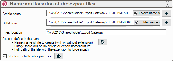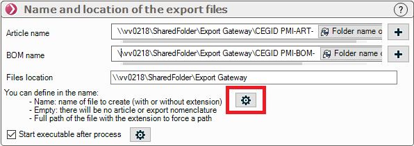 Er kann den Speicherort der Exportdatei erzwingen, indem er den Speicherort und den Namen der Exportdatei in den Eingabefeldern 'Artikelname' und 'Stücklistenname' angibt.