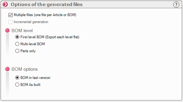 Optionen für den Export von Stücklisten (Beispiel für ein- oder mehrstufigen Export ansehen)