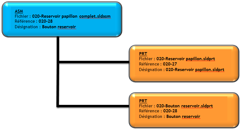 - Eine Datei für die Artikel (die Baugruppe und ihre beiden Teile)